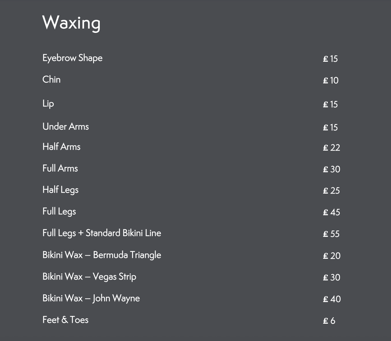 Treatment Menu